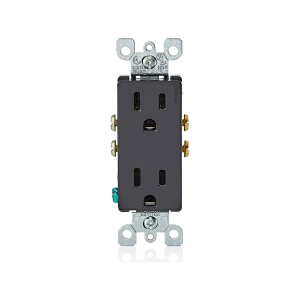 Leviton 5325-E 15 Amp, 125 Volt, Decora Duplex Receptacle, Residential Grade, Grounding, Black